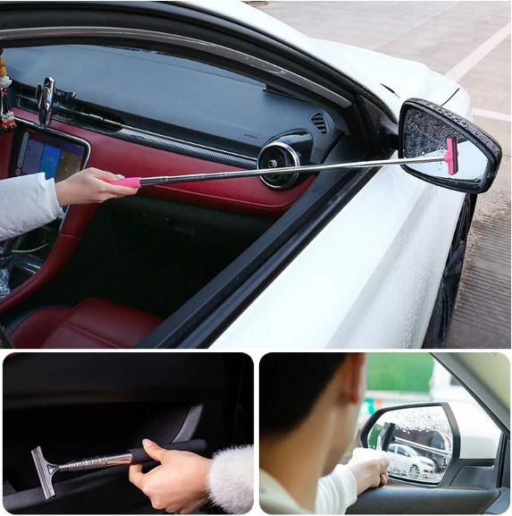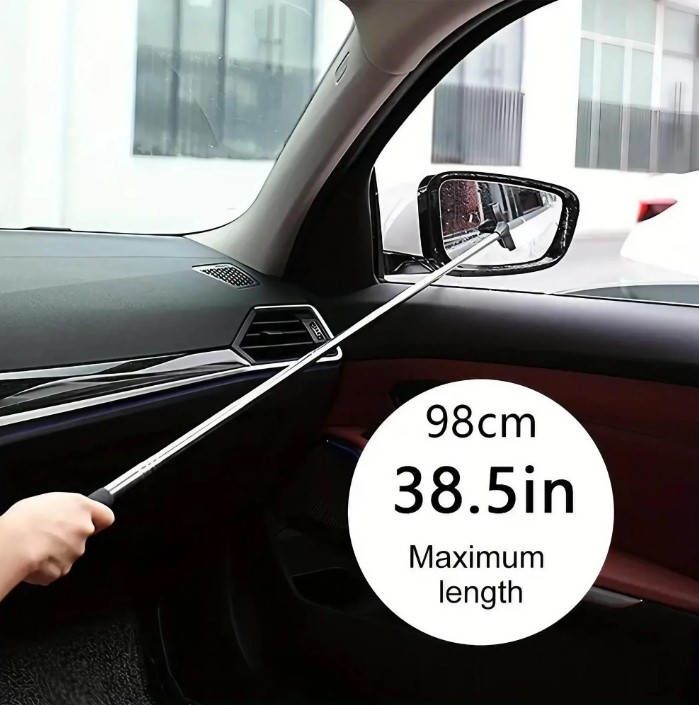 Teleskopik araba cam ayna sileceği, sol ve sağ dikiz aynalarının yanı sıra ulaşılması zor cam köşelerinde etkili temizlik sağlar.