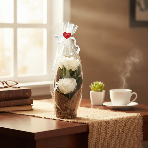 Her biri özenle ambalajlanmış olan çiçekler, rustik kraft kağıdı sargısı ve kalp detaylı üst süsleme ile zarif bir bütünlük sunar.Kraponlu yapay çiçek malzemesi, uzun ömürlü kullanım sağlar ve solmadan ilk günkü tazeliğini korur.