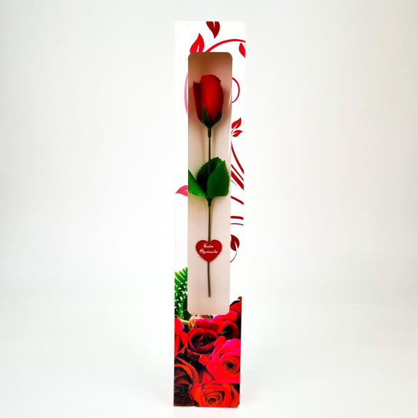 Kutu formundaki koruyucu ambalaj, gülün formunu uzun süre muhafaza eder.