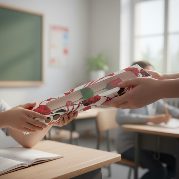 Kırmızı tonlarıyla sevgi ve takdiri temsil eden bu ürün, öğretmenlerinize özel bir teşekkür ifadesi sunar.Dayanıklı plastik kutusu sayesinde uzun süre bozulmadan saklanabilir.
