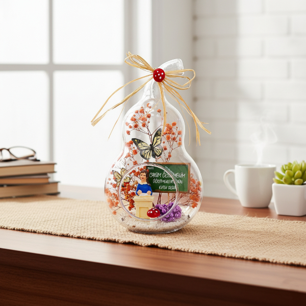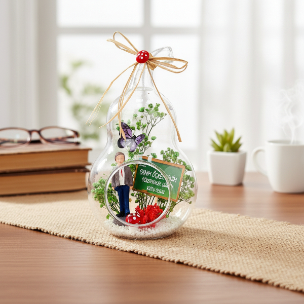 Şık ve zarif tasarımıyla dikkat çeken Mini Armut Teraryum, Öğretmenler Günü için hazırlanmış anlamlı ve dekoratif bir hediye alternatifidir.