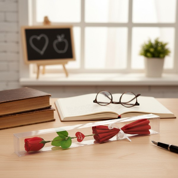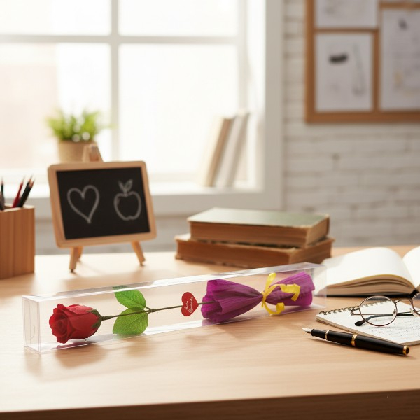1 adet Şeffaf Kutulu Kraponlu Gül - Öğretmenler Günü Hediyesi