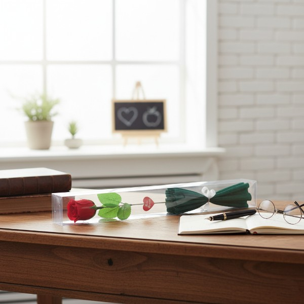 Şeffaf kutusu sayesinde hem korunaklı hem de dekoratif bir sunum sağlar.